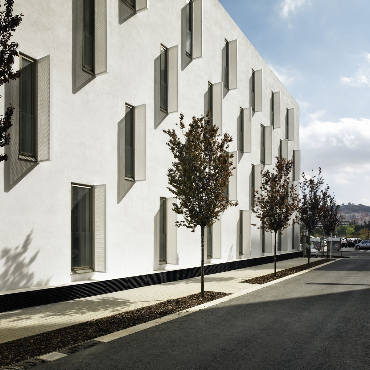 L’edificio, situato nel limite Nord della città di Barcellona è composto da ottantacinque appartamenti a canone sociale con servizi di appoggio e locali destinati a servizi di quartiere, sfrutta sapientemente le condizioni climatiche dell’area: le zone destinate a servizi (corridoi, armadi di manutenzione, bagni, cucine e spogliatoio) sono ubicate nella fascia nord delle due barre che compongono l’edificio, mentre tutte le zone di relazione si trovano nella zona sud, in contatto diretto con l’esterno. Il tipo base, costituito da camera da letto, salone, cucina e bagno, è interessante nella sua distribuzione interna giacché studiato in maniera tale affinché il suo spazio possa essere percepito più ampio rispetto alle sue dimensioni reali.
