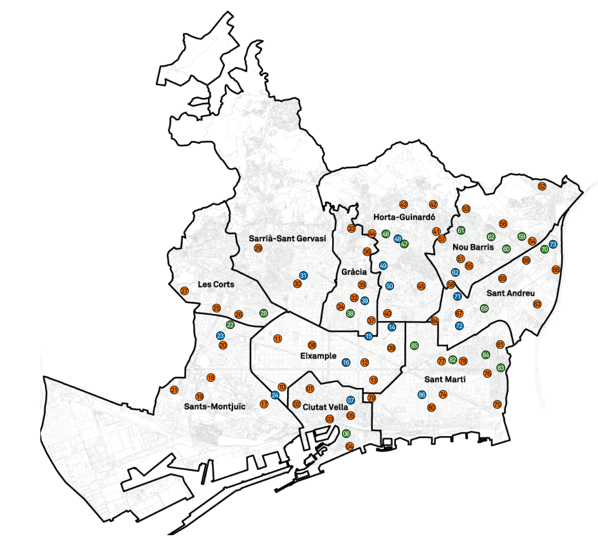 (Fig 2) Mappa dei centri per anziani presenti nella città di Barcellona