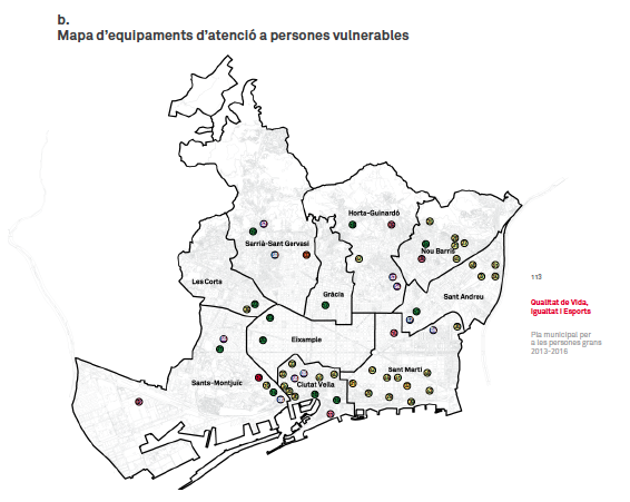 Àrea de Qualitat de Vida, Igualtat i Esports della Municipalità di Barcellona ha elaborato il Piano Comunale 2013-2016 per gli anziani, con l’obiettivo di migliorare la qualità della vita attraverso politiche pubbliche e servizi pensati per le spefiche caratteristiche, situazioni e necessità della persona anziana. Elaborare una strategia progettuale chiara e coerente sull’invecchiamento della popolazione per conoscere il contesto sul quale si agisce e definire le scelte e gli scenari futuri, è infatti alla base di una buona gestione di risorse, materiali ed immateriali, e una garanzia di risultati efficaci.